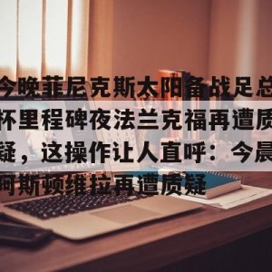 #今晚菲尼克斯太阳备战足总杯里程碑夜法兰克福再遭质疑 #这操作让人直呼:今晨阿斯顿维拉再遭质疑